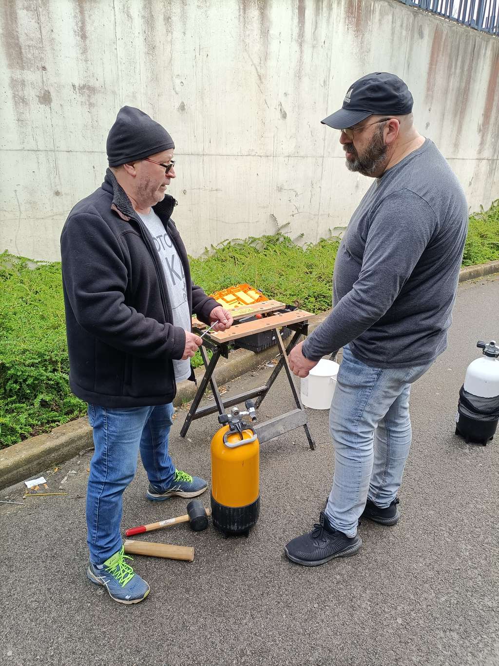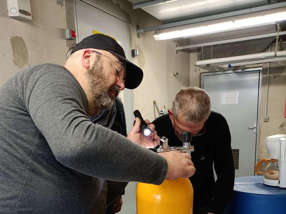 Sébastien et Eric ont réuni tous les participants au local du compresseur bien équipé de tout le matériel nécessaire à l'inspection visuelle des blocs de plongée. Chacun a pu suivre les consignes des éléments à inspecter et repérer les anomalies éventuelles sur chaque bloc. La séance s'est clôturée dans une ambiance conviviale, détendue avec une collation et des rafraichissements.